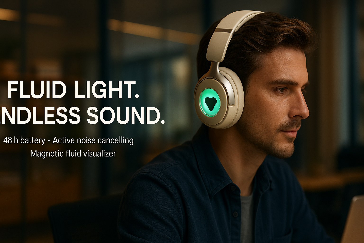 Yes. CROOFLUID is our signature over-ear headphone that combines immersive sound, active noise cancelling and a live ferrofluid display on the earcup. The dark liquid you see inside the window is real ferrofluid that responds to a magnetic field, creating smooth, organic shapes that move with your audio in real time.